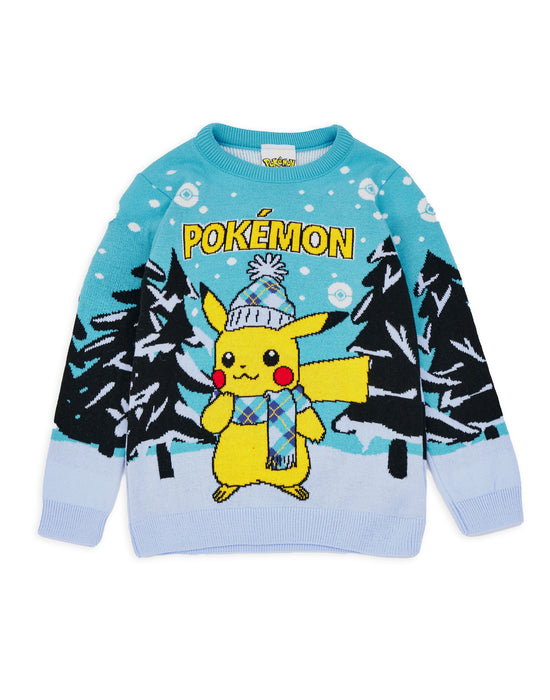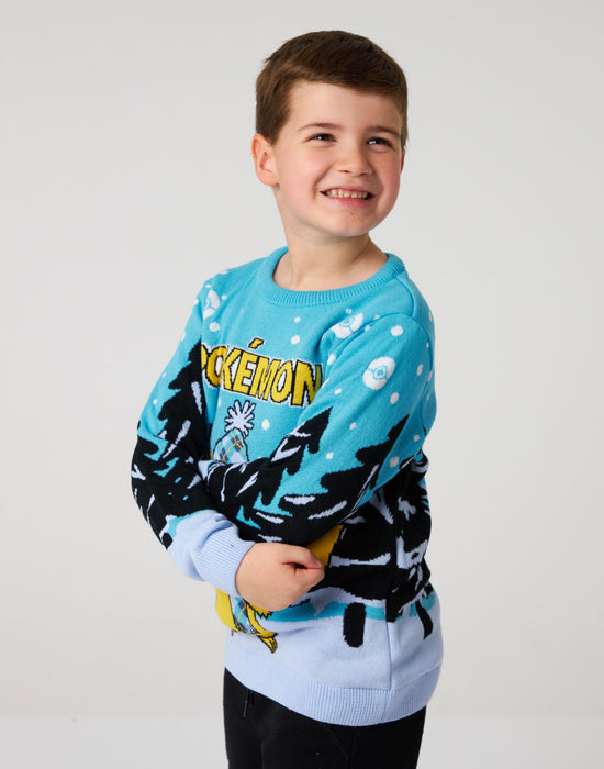 Dive into a holiday adventure with our Pokemon Kids Knitted Blue Christmas Jumper!