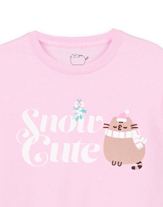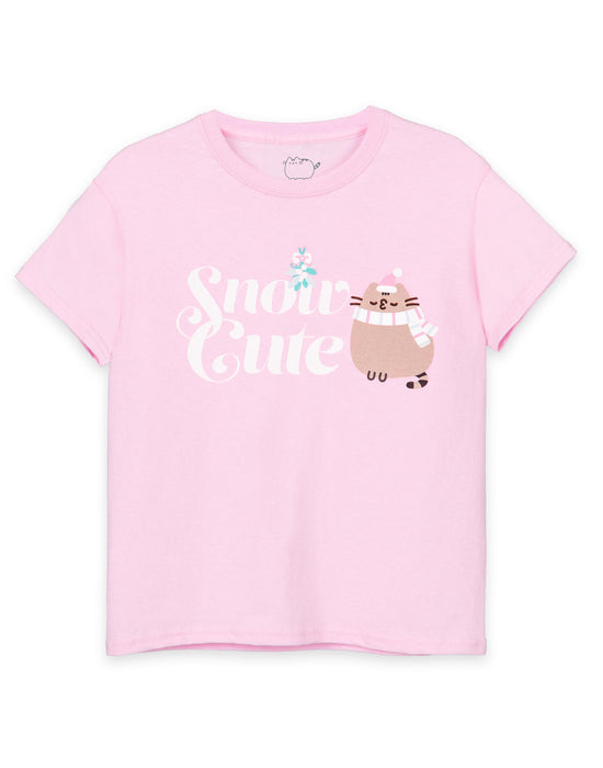 Pusheen Snow Cute Girls Pink Short Sleeved T-Shirt