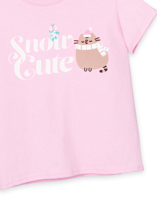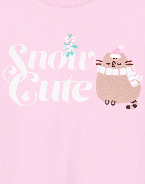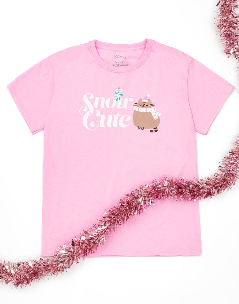 Let her step out in style this holiday with the Pusheen Snow Cute Girls Pink Short Sleeved T-Shirt!