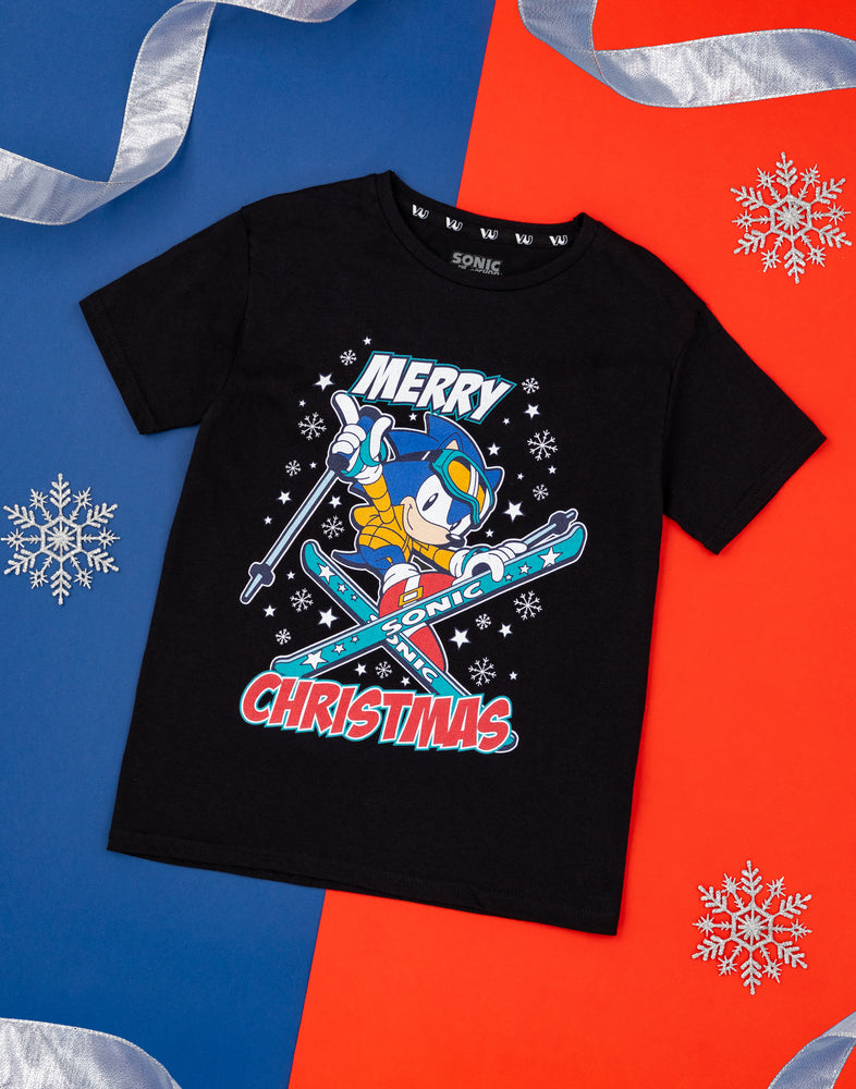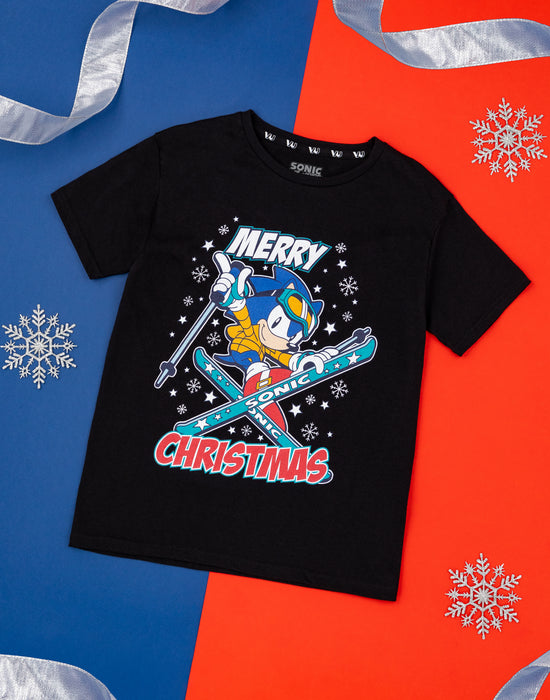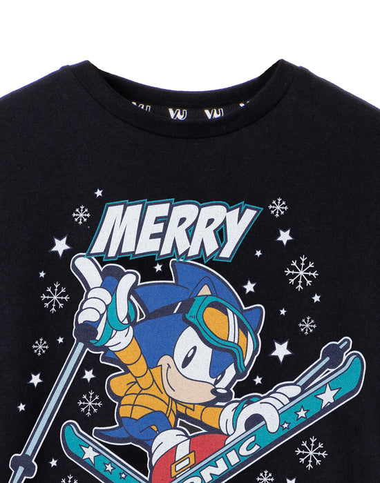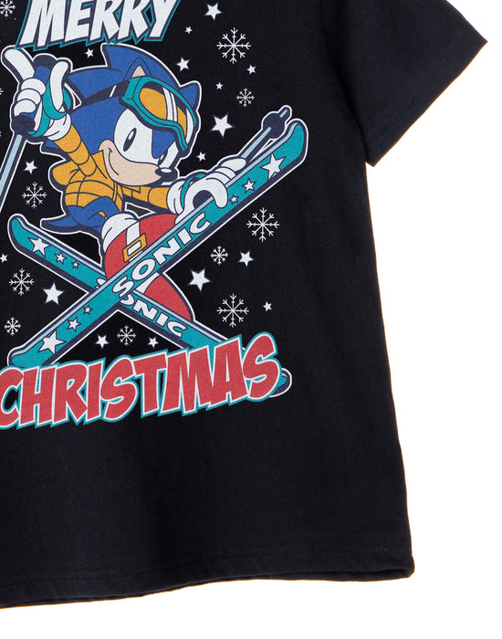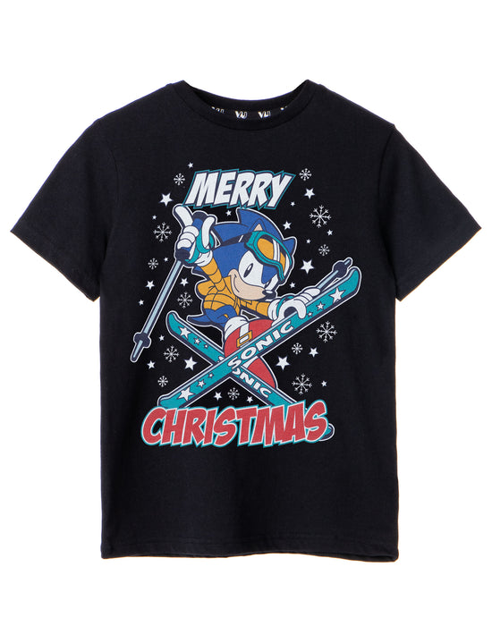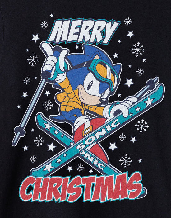 Sonic the Hedgehog Merry Christmas Boys Black Short Sleeved T-Shirt