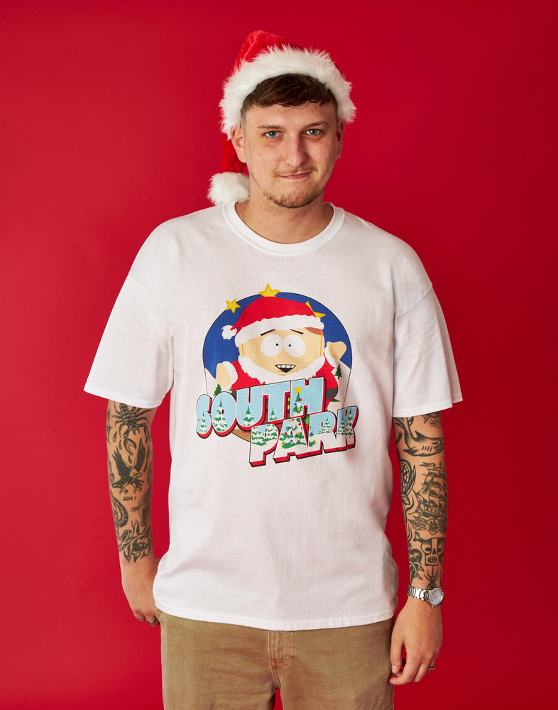Embrace the festive season with a touch of humour in the South Park Cartman Santa White Men's Christmas T-Shirt!