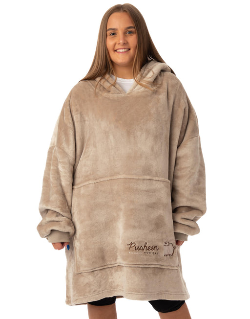 This dressing gown comes in a light brown colour with a playful Pusheen the Cat design across the hood featuring 3D ears, adding a touch of cuteness to your loungewear outfit. Made from soft and fluffy polyester with a sherpa fleece-lined hood, this bathrobe provides ultimate comfort whilst the adjustable belt ensures the perfect fit. Plus, with two handy pockets, you can carry your favourite snacks, mobile phone or TV controller, making it the perfect loungewear for movie nights or lazy weekends. This Pusheen nightgown is an ideal gift for any fan of the cute and lovable cat.