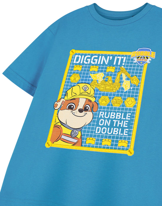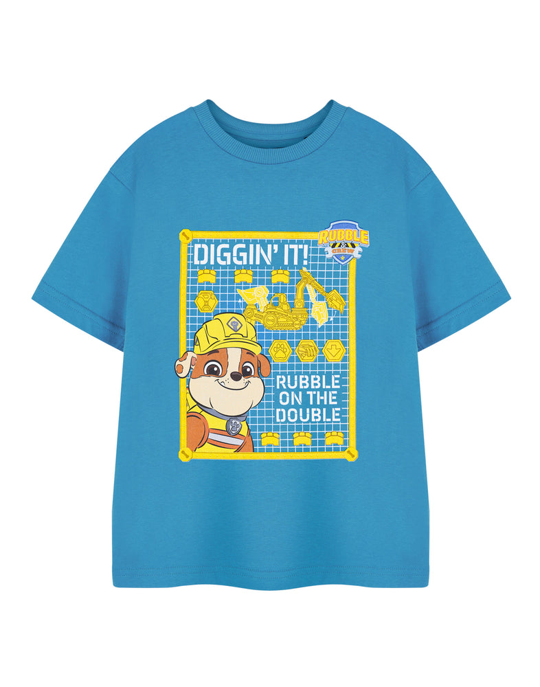 Join the Paw Patrol crew and dig into some fun with our Paw Patrol Rubble & Crew Boys Blue Short-Sleeved T-Shirt!
