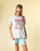 This mint green Pusheen T-shirt and matching grey shorts set is crafted from 100% cotton for ultimate softness and breathability, perfect for girls who love playful, casual fashion. With a comfortable fit and easy-care fabric, this outfit encourages young fans to express their love for Pusheen while enjoying versatile wear for everyday activities or lounging at home.