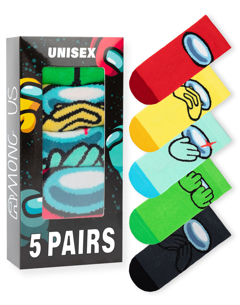 Designed for young boys who love Among Us, these vibrant socks come in five fun colors—Red, Yellow, Green, Blue, and Black—featuring playful graphics of their favorite characters. Perfect for imaginative play or gaming marathons, these comfy socks not only keep little feet cozy but also allow them to express their passion for the game, making them a stylish addition to any outfit with five pairs to mix and match!