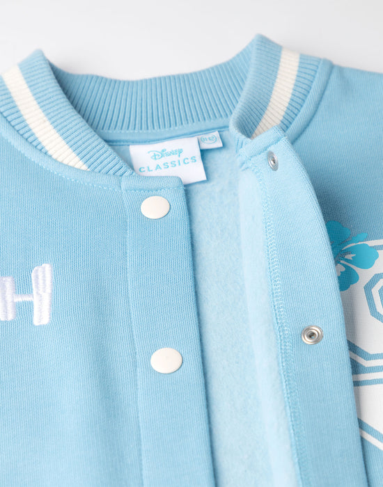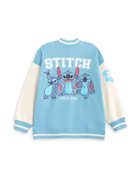 Disney Lilo & Stitch Girls Blue Varsity Jacket is designed for young fans who appreciate comfort combined with casual wear functionality.