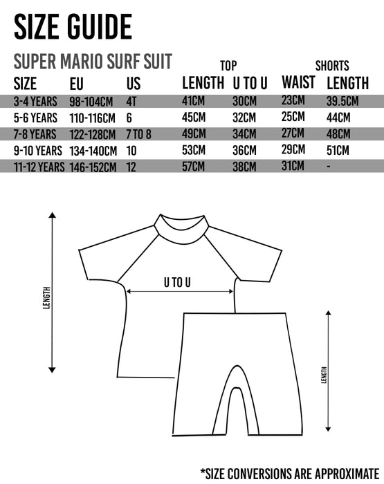 We want you to get the most out of your new Super Mario swimwear outfit so please be sure to wash the gaming swimsuit at 40°C, wash with similar colours, wash inside out, rinse well in cold water immediately after use and dry away from direct sunlight and contact our dedicated customer service team for any additional information or sizing queries.