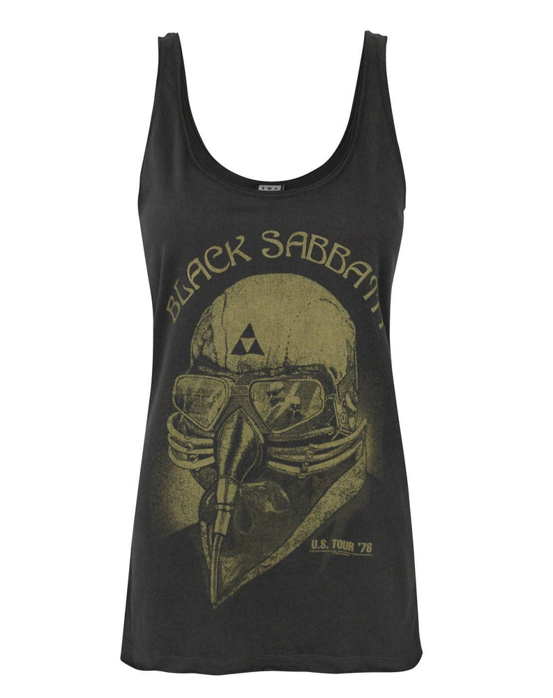 Amplify your life with this awesome Amplified Black Sabbath 1978 US Tour vest for women! A must have for fans of the iconic band, this vest from Amplified clothing sees a large print across the front of the garment showcasing the iconic artwork for the Black Sabbath US Tour in 78. This print offers a unique faded and distressed finish, fitting perfectly with the charcoal of the vest and giving this garment a distinctive feel. This design itself was also featured in the Avengers movie, worn by Tony Stark. This womens Black Sabbath vest offers a scoop neck and raw edge straps with a slim ladies fit and finish. Made from 100% cotton this vest has a comfortable fit. This vest has raw edge seams and hems for a unique rock n roll look. Please follow care label instructions carefully and ask for additional sizing information if needed.
