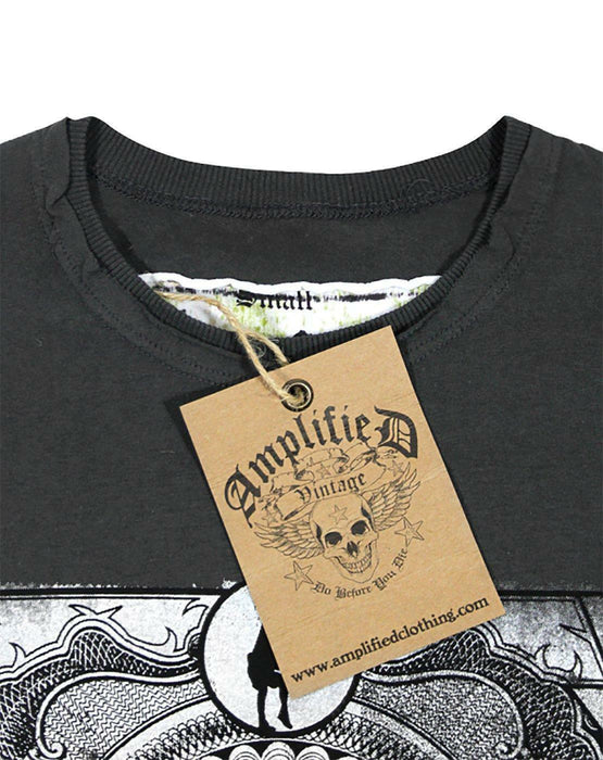 This official AC/DC Black Ice t-shirt is another awesome offering from brand Amplified Clothing, merging music and fashion is what they do best and they haven’t failed to deliver with this rock n roll inspired AC/DC men’s t-shirt. Taken from legendary rockers AC/DC’s 2008 album Black Ice, this vivid print teamed with vintage wash and raw edge effect and a ribbed neckline detail makes this t-shirt a go to piece again and again. The perfect t-shirt to toughen up your casual everyday wear or show off throughout this year’s festival season!