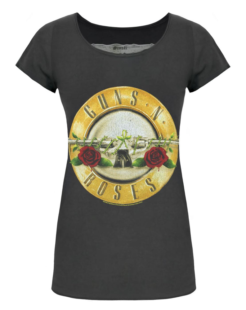 There is no doubt that Guns N Roses are music legends, this Guns N Roses logo women’s t-shirt is the perfect addition to any Guns N Roses music fan’s collection. Straight from Amplified this ladies Guns N Roses Grey t-shirt is packed with fashionable features, raw edge scoop neck and hem, distress effect print and flattering slim fit. The iconic rock band’s logo is showcased in a large, bold print across the front of the t-shirt finished with an overall vintage wash detail.