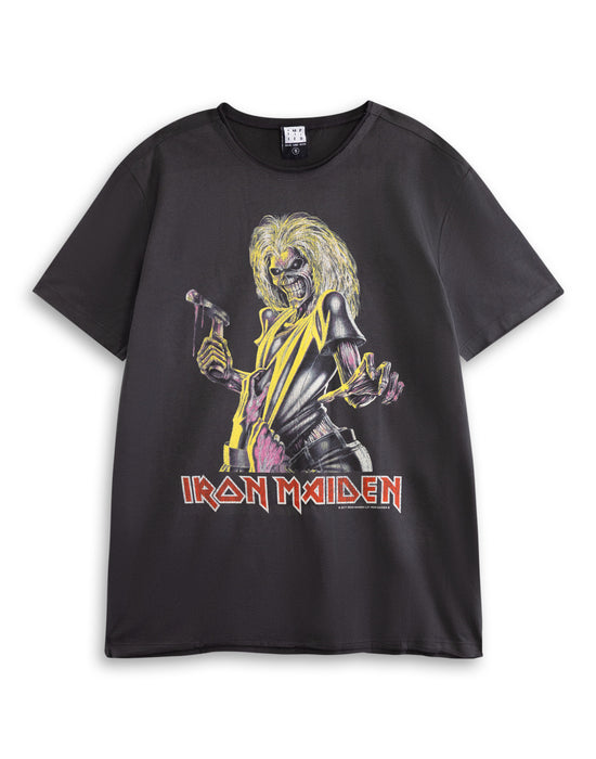 Take home a taste of heavy metal with this classic Iron Maiden Eddie The Head Killers mens t-shirt. Bursting with hard rock rawness, this Amplified mens slim fitting t-shirt offers a cool ribbed neckline, distressed effect finish and raw edge neck, sleeves and hem. The large, retro inspired print of Eddie the Head is finished with intense detail showing off the premium quality of this Amplified mens t-shirt.