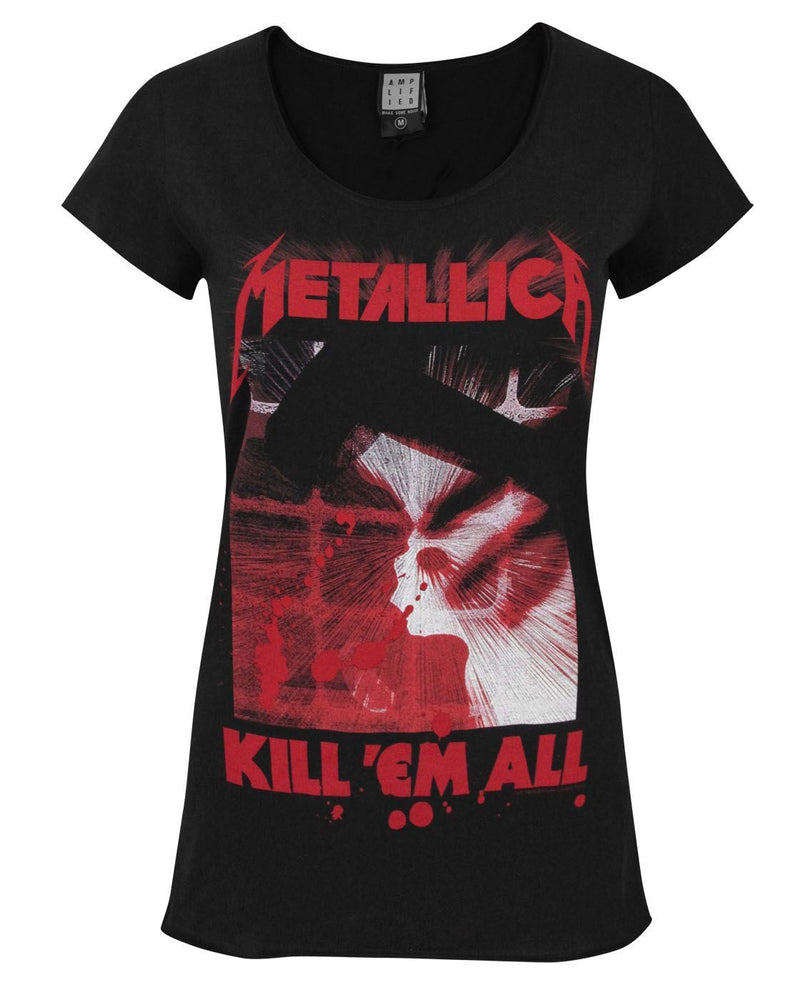 Amplify your life with this awesome Metallica Kill Em All t-shirt for women! Inspired by the 1983 album Kill Em All this t-shirt features a strong print that makes this a stand out t-shirt. The design sees the album artwork with the Metallica logo across the top, the print has a stand out vivid red colouring with great attention to detail.