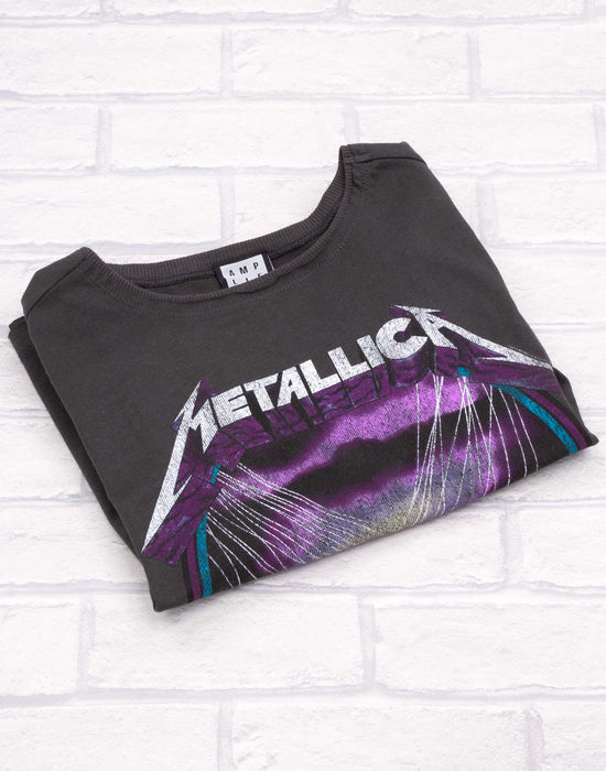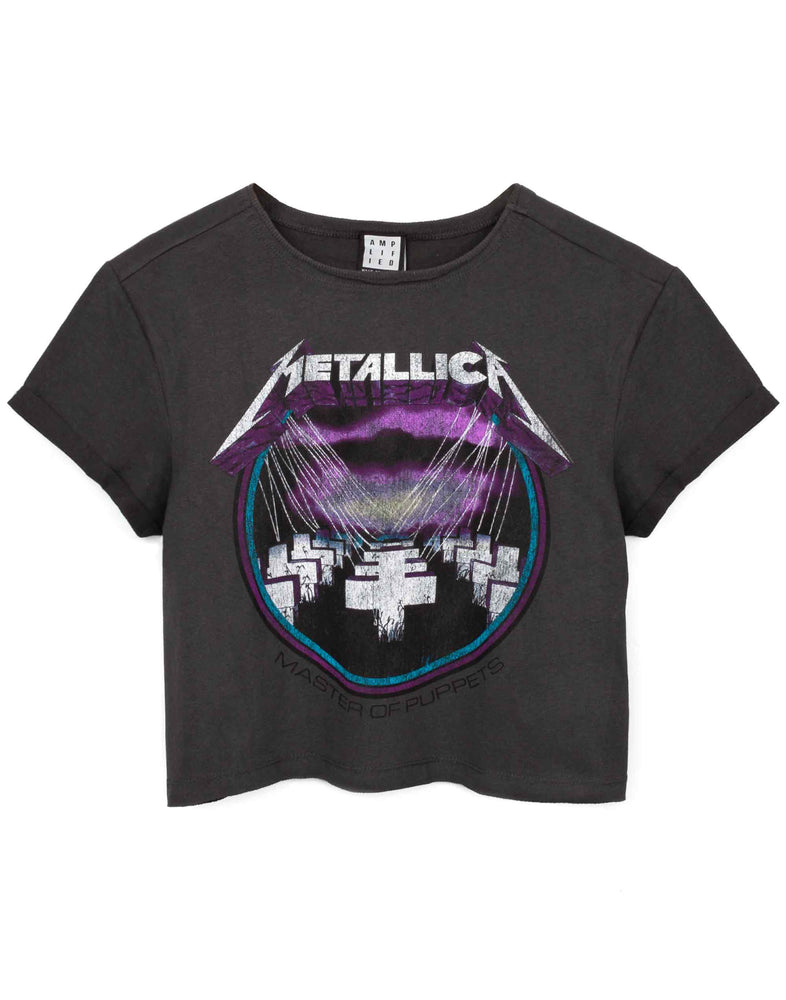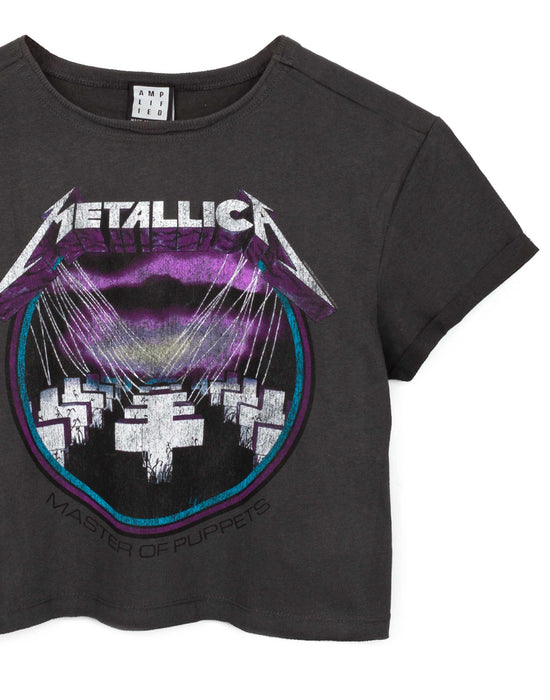 Make some noise with your style in this awesome Amplified Metallica Master of Puppets women's cropped t-shirt!