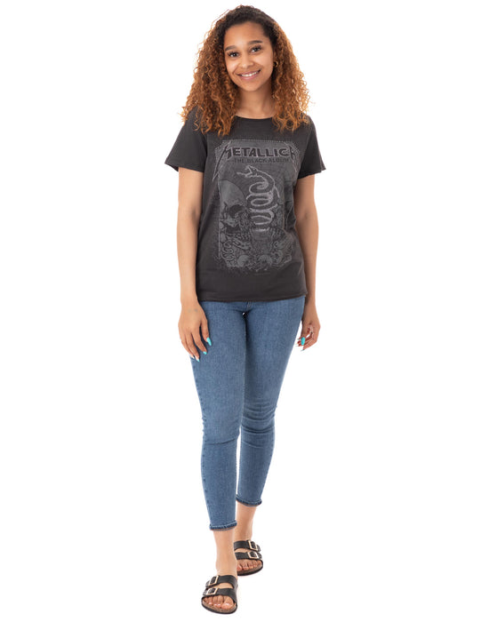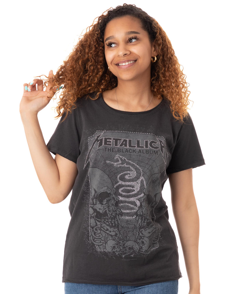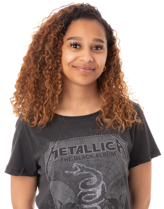 Amplified Metallica The Black Album Skull Snake Diamante Women's T-Shirt