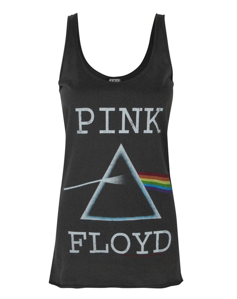 Make some noise with your style in this awesome Amplified Pink Floyd Dark Side Of The Moon womens vest! The print across the front of the vest sees the classic artwork for Pink Floyds Dark Side of the Moon in a cool subtle distressed style and faded out look adding to the rock n roll vibe. This womens Pink Floyd vest offers a scoop neck and raw edge straps with a slim ladies fit and finish. Made from 100% cotton this vest has a comfortable fit. This vest has raw edge seams and hems for a unique rock n roll look. Please follow care label instructions carefully and ask for additional sizing information if needed.