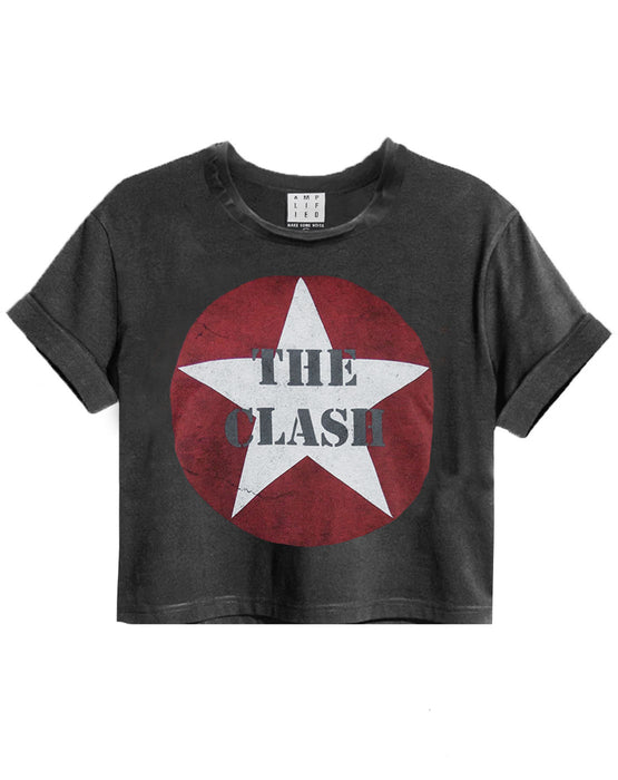 Amplified The Clash Logo Charcoal Women's Ladies Cropped Tee T-Shirt