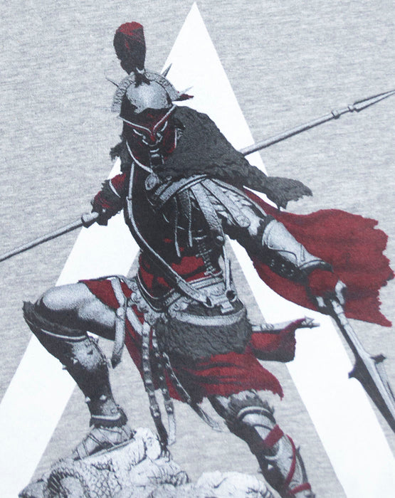 - ASSASSIN’S CREED KNIGHT DESIGN TEE - Assassin’s Creed for gamers features a print of the Knight from Odyssey ready for battle. The grey t-shirt is great quality and is suitable to wear not only as a pyjama top, but also to wear out on summer days.