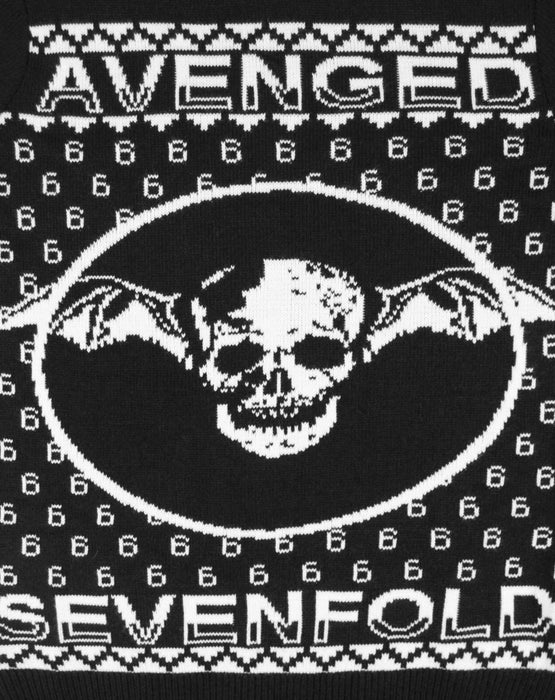 Add a little rock n roll to Christmas this year with this awesome officially licensed Avenged Sevenfold Death Bat Unisex Christmas Jumper! Bring Avenged Sevenfold to the Christmas party in style with this fun take on the traditional Christmas jumper; the design showcases the classic fair isle stitch pattern in crisp white across the front and cuffs of the jumper adding to the Christmassy feel. This jumper sees the Avenged Sevenfold Deathbat logo across the front with great attention to detail along with Avenged Sevenfold in bold lettering,