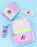 Get ready to take their style game to the next level with our Barbie girl's 4 piece backpack set. This pastel purple backpack features the iconic fashion dolls posing with a Barbie all-over print, making it the perfect accessory to complete their school day or adventure outfit.