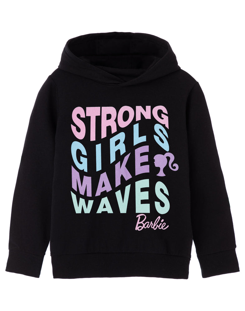 Gear up your little girl for wave-making adventures with our empowering Barbie Girls black hoodie – Where Strength Meets Style!
