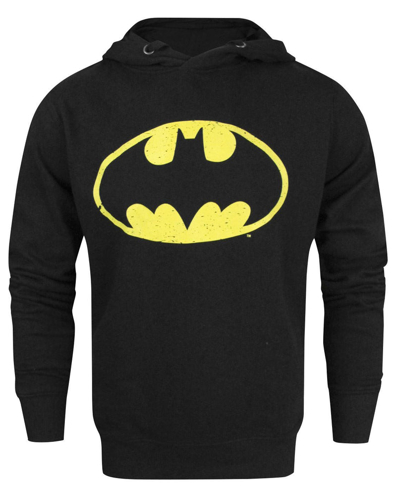 Fancy something a little different? This Batman Speckle Distress hoodie for men offers some serious superhero style. The large design across the front of the hoodie showcases the traditional Batman logo in the vibrant yellow and black with a unique distress effect finish running through it. This speckle look sees the iconic Batman symbol with a cool washed out or vintage inspired look. This mens hoodie comes in classic black and has a number of stylish features, including a drawstring hood, long sleeves and front pouch pocket. Offering a standard fit this Batman speckle distress hoodie feels great and looks even better! Please follow care label instructions carefully.