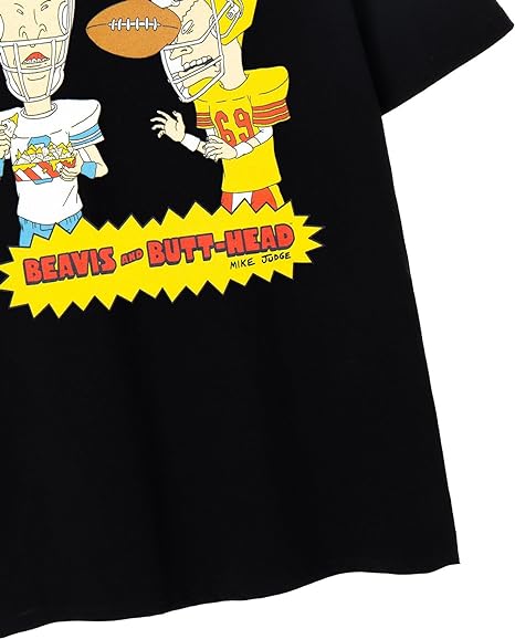 It's time to suit up and get ready to tackle the world of hilarity with our Beavis & Butthead Football Men's Black Short-Sleeved T-Shirt!