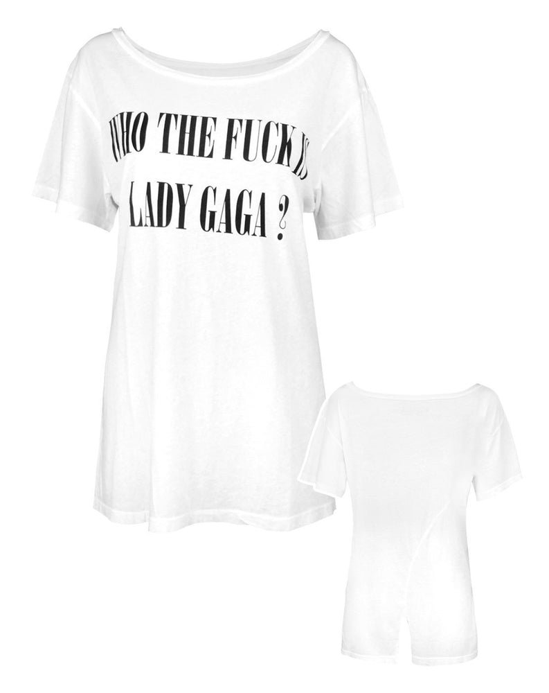 The ultimate fashion t-shirt brand, Blood Is The New Black are a born in the USA brand offering high end photography style printed t-shirts. This Blood Is The New Black Who the Fuck Is Lady Gaga women's t-shirt from the Bobby Whigham Too Young t-shirt range is filled with fashion forward features. The loose fit slouch neck t-shirt boldly states 'Who The Fuck Is Lady Gaga' in classic black print against the 100% cotton white ladies t-shirt. Seamlessly mixing pop culture phenomena with premium fashion style this Bobby Whigham t-shirt offers raw edge armholes and hem in a muscle t-shirt style all washing machine/tumble dry friendly.