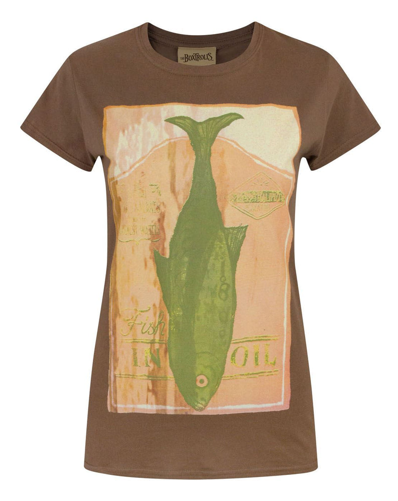 Officially licensed, this Boxtrolls Fish t-shirt is perfect for any fans of the stop-motion animated feature! The print across the front of the t-shirt features the artwork from the box of fan-favourite Boxtroll, Fish. Printed in crisp detail and vibrant colour, this t-shirt is a must have! Made from 100% cotton, this t-shirt offers a standard womens fit, comes in brown, has a crew neck and short sleeves, and features official branding throughout. Please follow care label instructions carefully and ask for additional sizing information if needed.