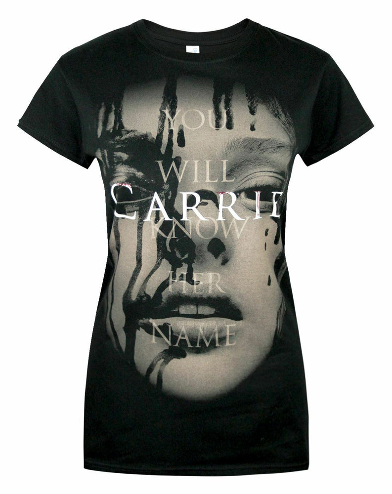 This ladies Official Carrie women’s t-shirt features the iconic main character Carrie White from the Stephen King film adaption of Carrie. Made from 100% cotton and machine washable at 30c this women’s t-shirt has both comfort and fun. Offering the classic crew neck and short sleeves style, this ladies t-shirt is made with a fashionable slim or skinny fit in mind. This ladies black Carrie t-shirt features the iconic movie poster print from the 2013 re-make, a cool addition to any movie fan’s t-shirt collection.
