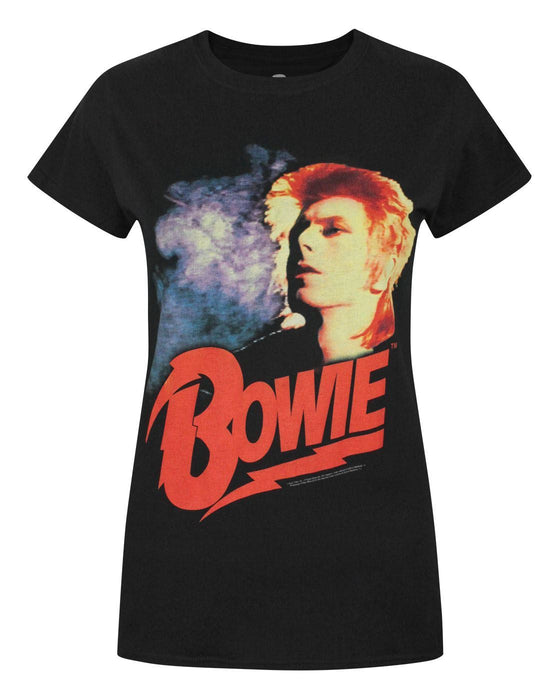 This official David Bowie Retro t-shirt for women is a cool addition to any fans wardrobe. An officially licensed product, this awesome t-shirt is a must-have addition to your band merchandise. This large print is packed with detail and showcases a classic print of Bowie with his trademark red hair, backed by swirling blue smoke. Underneath, Bowies bold text logo is printed in a vivid red, completing the retro look of the garment.