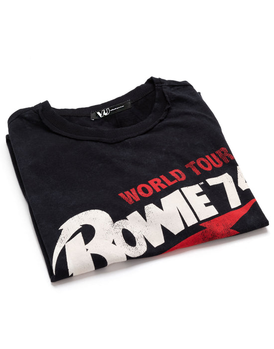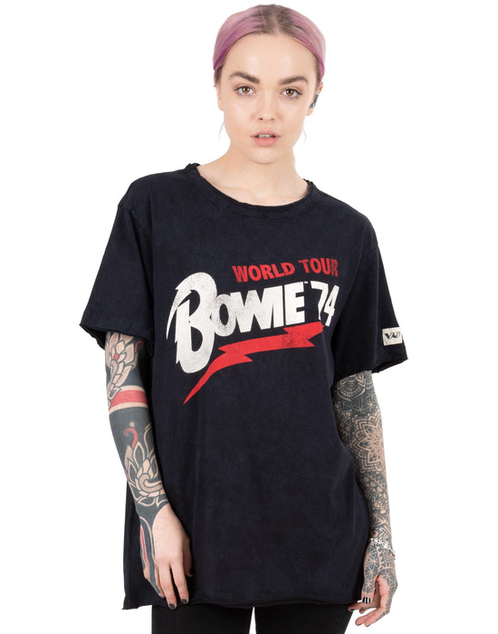 Officially licensed and exclusive to Vanilla Underground, our acid-wash tee carries a modern relaxed fit and features Bowie’s 1974 World Tour graphic in a bold red and white print.