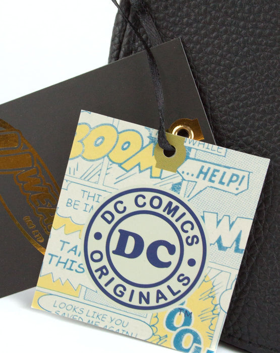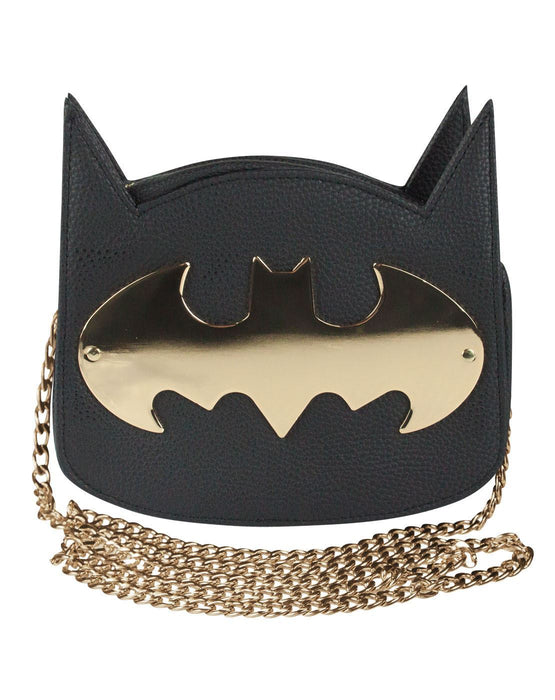 Ramp up your style with this awesome Batman Gotham Gold cross body bag! This stylish bag offers a mix of fashion and superhero making it a glam addition to your bag collection! This cross body bag comes in black with cute pointed edges following the Batman style; along with a gold zip opening and small inside compartment. This Gold Gotham bag sees the metallic bat logo across the front with a matching bat symbol on the back. This cross body style of the bag has a detachable gold chain, which can be attached to the bag to wear across the body or leave it off to make it into a cute little handhold bag! Made from 100% PU outer material and 100% polyester inner material. Measures approximately 8 x 6.5 inches. Please follow care instructions carefully.
