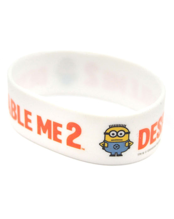 This official Despicable Me 2 2D Minion wristband is an awesome addition to your movie merchandise collection! Made with 100% white rubber this official wristband features the official Despicable Me 2 Minion logo and the adorable well-known minion called Jerry. One size this official Despicable Me 2 wristband is 21.5cm/8.5 inch circumference.