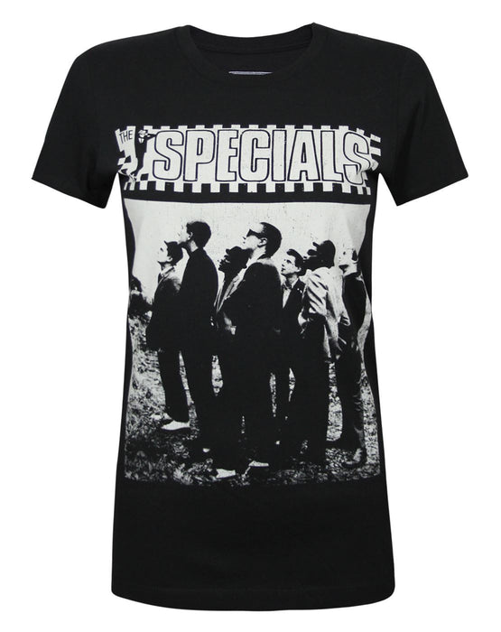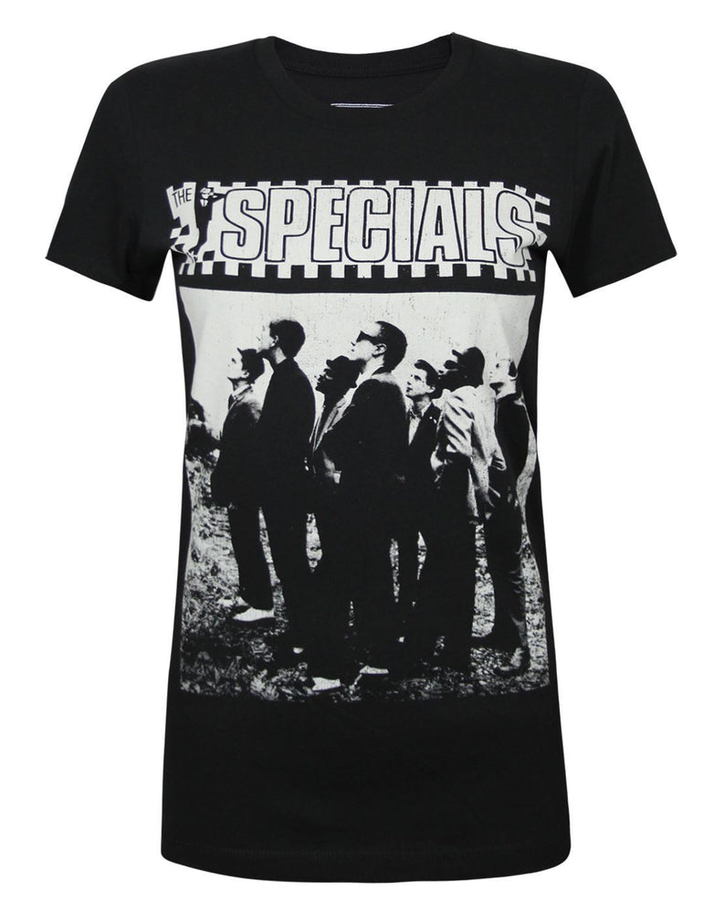 This Dirty Cotton Scoundrels womens t-shirt features the iconic ska band The Specials, known as one of the innovators of British 2 Tone music this ladies t-shirt is a retro music hit. Made in the USA this womens t-shirt showcases a slight distressed effect print of official The Specials artwork; along with clean-cut sleeves and hem and 100% soft cotton. This womens The Specials t-shirt is a perfect addition to any Mod inspired fashionistas wardrobe.