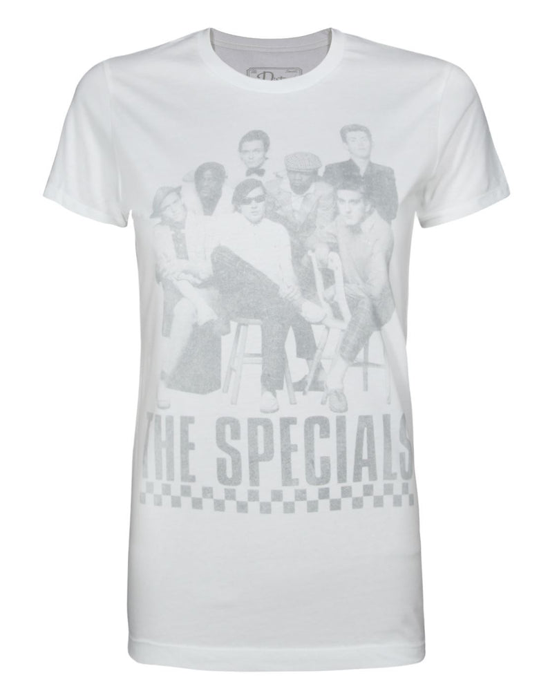 This Dirty Cotton Scoundrels womens t-shirt features the iconic ska band The Specials, known as one of the innovators of British 2 Tone music this ladies t-shirt is a retro music hit. Made in the USA this womens t-shirt showcases the artwork for the B Side single Maggies Farm, in heavy distress effect this print offers a true vintage feel. Made with 100% cotton this womens white t-shirt is fresh from the USA and machine washable at 30c.