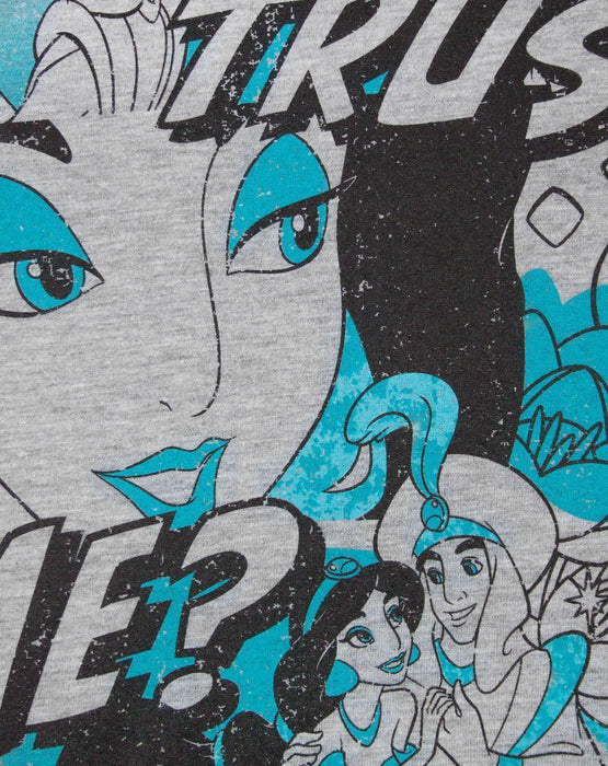 Perfect for Disney fans, this Disney Aladdin Trust Me womens t-shirt is the ideal way to add some Disney style to your wardrobe! The print across the front of the garment combines iconic images of Aladdin and Jasmine, including the standout magic carpet ride scene from the classic animated film in a cool blue and black collage design. Completed by the slogan “Trust Me?” this print is packed with detail.