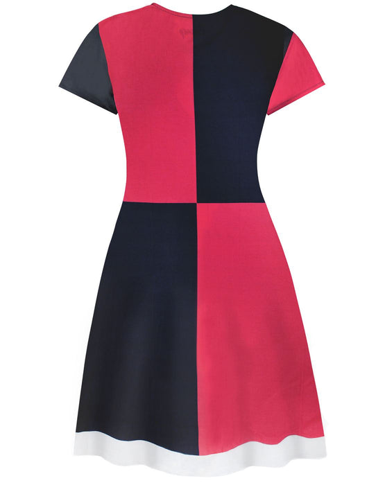 It will be 'off with their heads' with this Disney Alice in Wonderland Queen of Hearts dress! A great costume idea this dress sees the formidable Queen's iconic heart dress with great attention to detail. The dress comes in red, black and yellow with a white base and offers a midi length skater style fit along with cap sleeves and scoop neck. Taken from the Disney take on Lewis Carroll's classic Alice in Wonderland this costume inspired dress is perfect for channeling your inner queen. The ideal easy dress up outfit this costume piece is perfect for Halloween or parties as well as a cool cosplay option for all year round! Please follow care label instructions carefully.