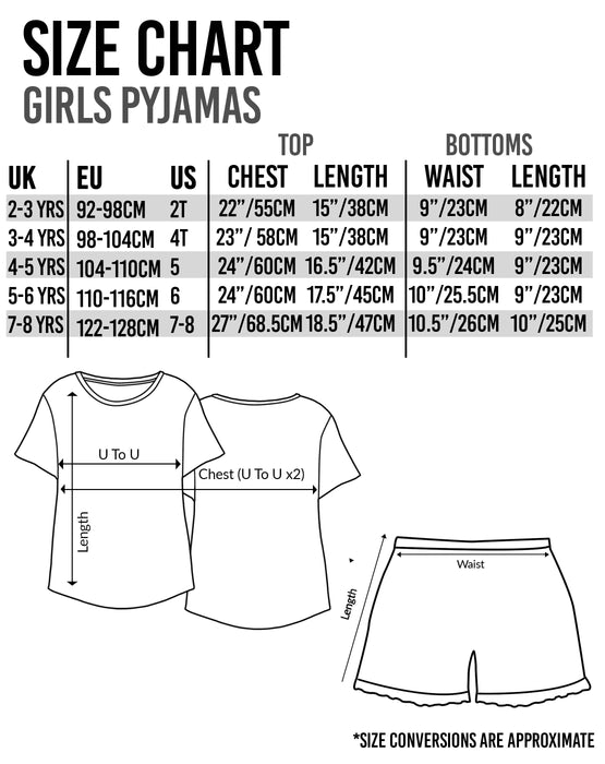These Dumbo girls pyjamas are perfect for your little ones. Featuring the adorable flying elephant on the front of the short sleeve white t-shirt with stars also present on the PJ top and pink shorts. This two piece top and bottoms lounge set offer a fashionable style with crinkled capped sleeves and frilled short hems, finished with a cute bow detail on the neck and elasticated waist. Made from a mixture of cotton and polyester these pyjamas are sure to be the cutest and most comfortable bedtime addition. This item is 100% genuine licensed Disney merchandise & features official branding throughout. We want you to get the most out of your new pyjamas, so please be sure to follow all care label instructions and contact our dedicated customer service team for any additional information or sizing queries.