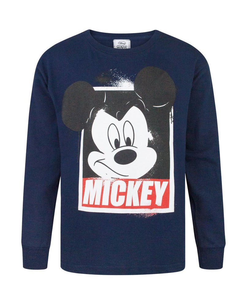 A cute addition to any little Disney fans wardrobe, this Mickey Mouse boys long sleeve t-shirt is packed with cool design. The print across the front of the t-shirt showcases the Disney mascot Mickey Mouse in a cool distressed finish with an alternative paint spatter style. The design sees Mickey in white against a red background adding a slogan style effect to the t-shirt; this boys Disney top has long sleeves and crew neck and comes in a deep navy. Made from 100% cotton this long sleeve t-shirt also offers a standard childrens fit. Please follow all care label instructions carefully.