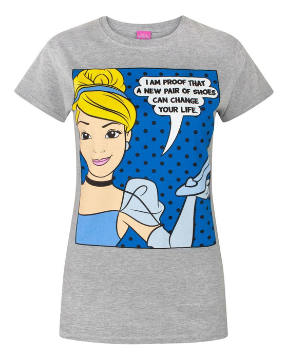 Perfect for Disney fans, this Cinderella New Shoes t-shirt is the ideal way to add some Disney magic to your wardrobe! The awesome design across the front of the shirt features the iconic Disney Princess, Cinderella in a cool colourful pop-art design; a speech bubble features the cheeky quote “I am proof that a new pair of shoes can change your life.” Printed in crisp detail and vivid colour, this t-shirt is a must-have! Made from 90% cotton, 10% polyester, this grey marl t-shirt offers a crew neck and short sleeve combination, and comes in a regular ladies fit. Please follow all care label instructions carefully and ask for additional product information if needed.