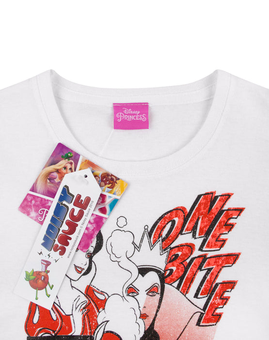 Perfect for little princesses, this Disney Snow White One Bite girls t-shirt is the ideal way to add some Disney style to your wardrobe! The print across the front of the garment combines iconic images of Snow White and the Evil Queen in a detailed red and black collage design. Underlined by “Snow White” in a crisp font and completed by the slogan “One Bite” in vivid red, this print is packed with detail. Offering a crew neck and short sleeve style, this t-shirt comes in crisp white and is made from 100% cotton for a comfortable feel. To get the most from this product, please follow care label instructions carefully.