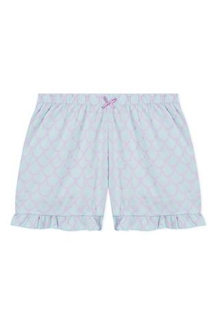 Watch your little take on a whole new Disney adventure before bedtime with these adorable officially licensed The Little Mermaid pjs! A must have for little Disney Princess lovers these sweet pyjamas showcase Ariel the under the sea mermaid princess joined with Disney sidekick Flounder and Sebastian. This gorgeous pj set comes in a girly pastel blue with a detailed design across the t-shirt with glittered effect text matched with mermaid scale printed shorts; ideal for warmer summer night times. Alongside this the two piece top and bottoms lounge set offer a fashionable style with crinkled sleeves and frilled short hems, finished with a cute bow detail on the neck and elasticated waist. Please follow all care instructions carefully.