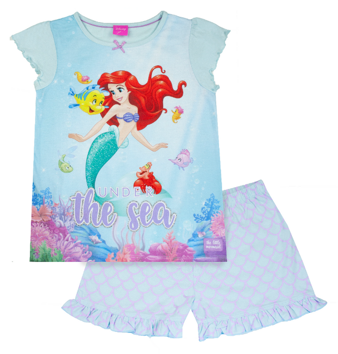 Disney The Little Mermaid Ariel Girls/Toddler Pyjama 2 Piece Shorts Set 2 - 8 Years