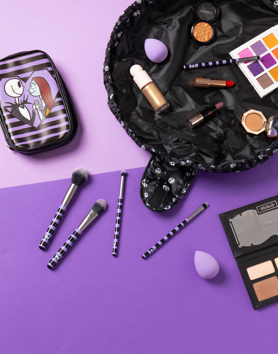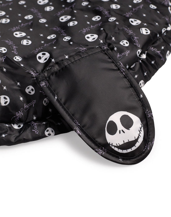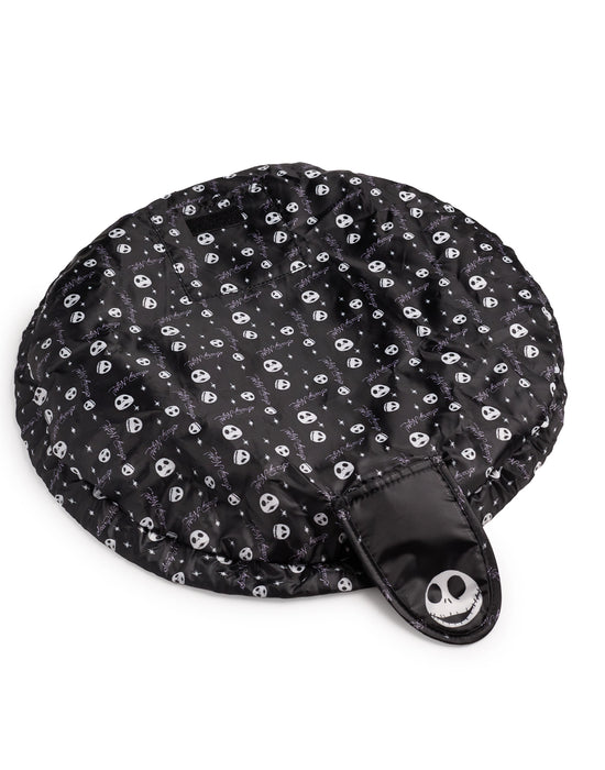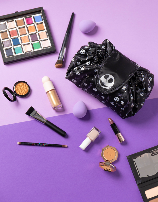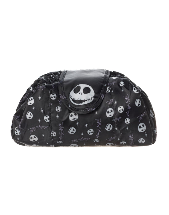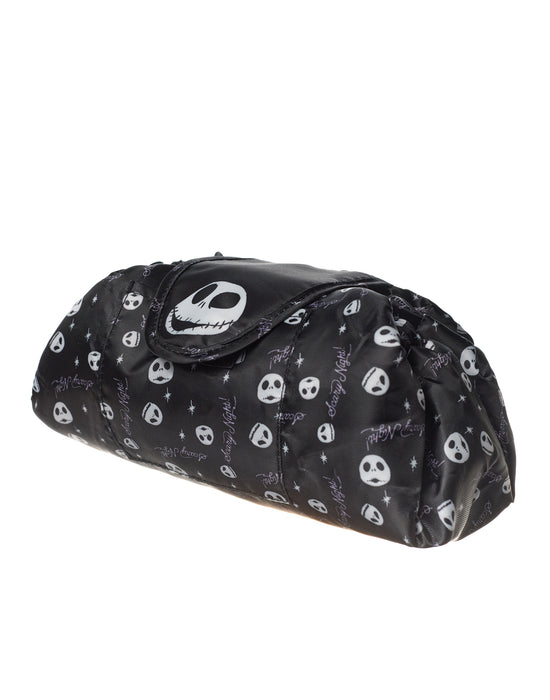 Perfect for fans of Tim Burton's iconic film, this black cosmetic pouch showcases an all-over print of Jack Skellington's character, bringing a touch of spooky charm to your beauty routine.