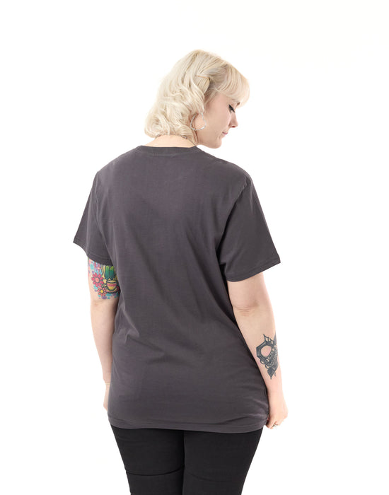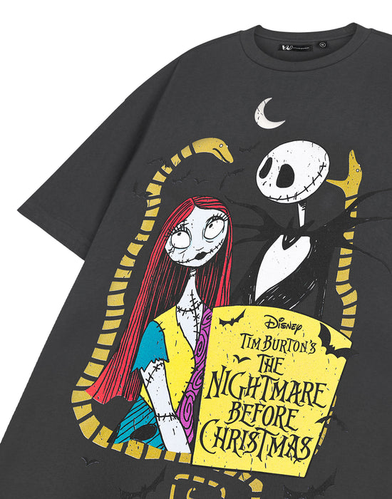 Dive into the dark and enchanting world of Tim Burton's Nightmare Before Christmas with our Jack and Sally Unisex Charcoal Graphic Tee!