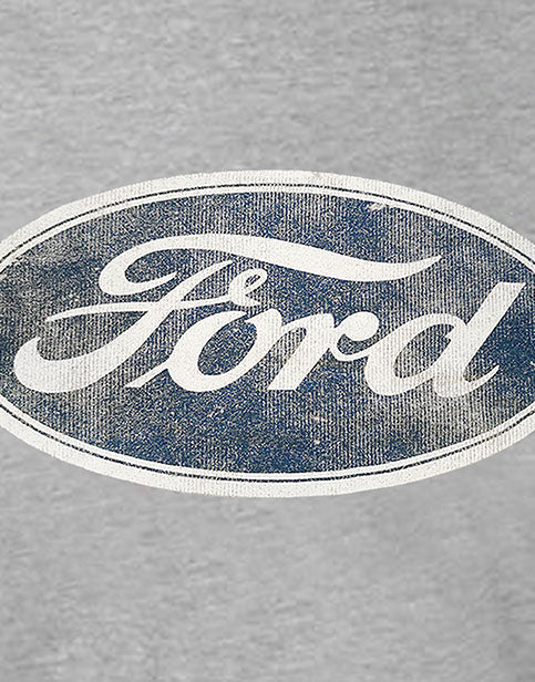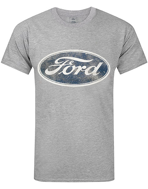 - DISTRESSED FORD LOGO T SHIRT FOR MEN – Smart vintage Ford logo top for him features a distressed look print of the well-known Ford logo contrasted against the grey tee making this men’s t-shirt a must have garment for Ford car lovers.