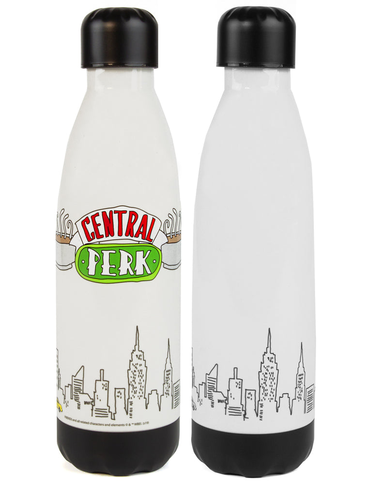 - FRIENDS CENTRAL PERK BOTTLE - Perfect for fans of the famous sitcom, this silver tritan water bottle features the instantly recognisable "Central" Perk logo across of front and a black lid and base