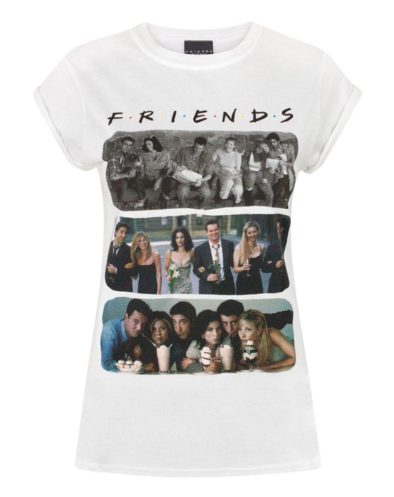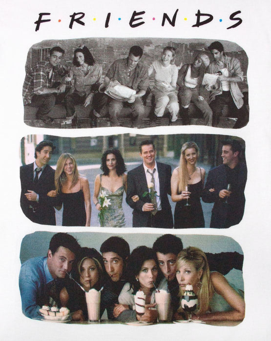 A must have for any Friends fan, this awesome t-shirt is sure to bring back nostalgic memories of everyones favourite sitcom! Inspired by the iconic show, this print features three images of the gang in rich detail, headed by the Friends logo. The colourful print stands out against the crisp white of the t-shirt making it a cool stand out look. This ladies t-shirt offers a crew neck and short sleeves with a regular fit. Made from 100% cotton, this t-shirt offers a comfy fit and feel. Please follow all wash care label instructions carefully, ask for additional sizing information if needed.
