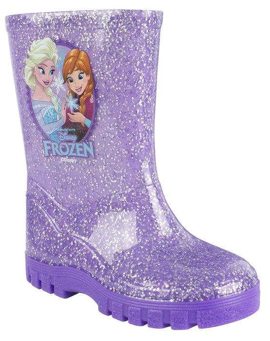 Splash around in Disney style with these officially licensed Frozen girls wellies! Perfect for rainy days, muddy puddles or building snowmen these wellies will see little ones through the whole year! These girls wellies are practical and easy to wear with a thick and sturdy sole. The design on these wellies sees Anna and Elsa in a crisp, colourful illustration. The wellies themselves come in a a light purple colour with an overall glittery effect for added snowflake style! Officially licensed, these Frozen girls wellies come with official branding and labelling throughout. Please contact a member of the team for further sizing information if needed. Please ensure footwear is entirely suitable before use, as items must be returned in original condition.
