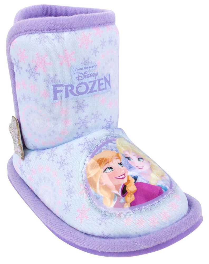 Oozing Disney style, these Frozen Sisters girls slipper boots are perfect for keeping little feet warm! These slipper boots feature an all over design of spiralling snowflakes in cool pinks and purples, complete with a detailed image of Anna and Elsa across the front of the slipper. These slippers also feature a glittery snowflake on the side, the Frozen logo on the ankle and are finished by faux fur around the ankles. Officially licensed, these Frozen girls slipper boots come with official branding and labelling throughout. Please contact a member of the team for further sizing information if needed. Please ensure footwear is entirely suitable before use, as items must be returned in original condition.